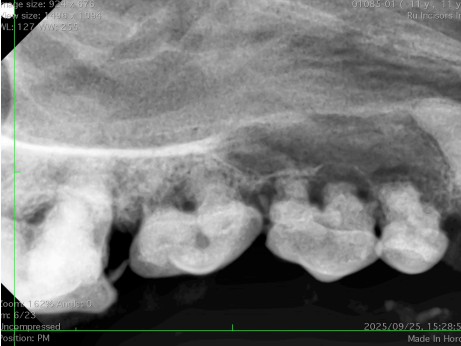 歯科用レントゲンにて歯根部と歯槽骨の状態を確認。