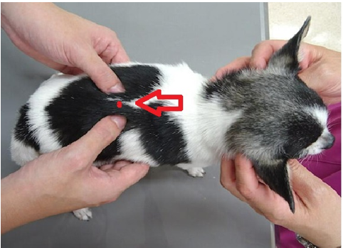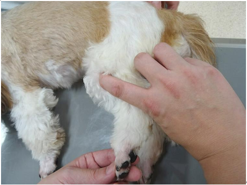 位置:後肢の前側、膝のお皿の下でやや外側。